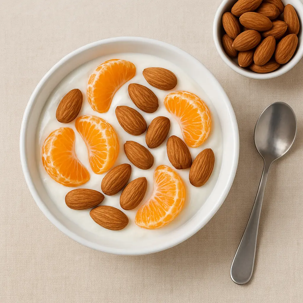 상큼한 귤과 고소한 아몬드, 담백한 플레인 요거트의 조화. 간단하지만 균형 잡힌 한 컵으로, 아침이나 간식으로 상큼하게 즐기기 좋은 요리 없는 건강 조합입니다.