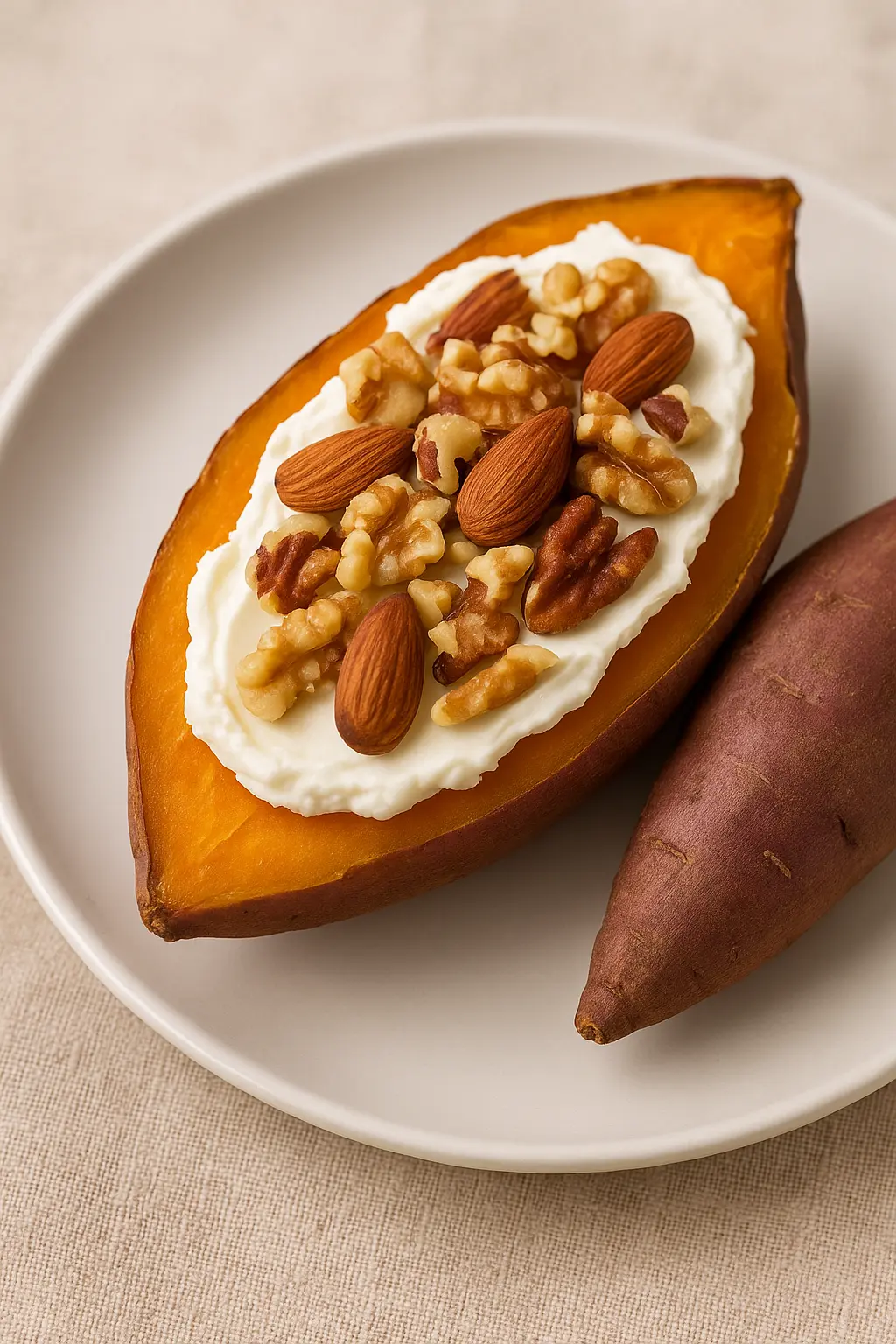 이 조합의 가장 큰 장점은 ‘가볍게 먹을 수 있는데 속은 든든하다’는 거예요. 아침에 뭘 먹기 귀찮은 날, 출근 전에 5분이라도 뭔가 챙겨야 할 때, 이 메뉴는 정말 유용해요. 고구마는 데워서 껍질 벗기고 반 가르고, 크림치즈를 한 스푼 얹고, 견과류를 뿌리면 끝. 말 그대로 ‘요리 없이’ 완성되는 한 끼죠.