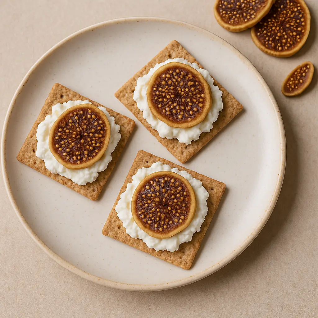 작은 접시에 리코타를 펴 바르고, 그 위에 무화과 슬라이스를 얹고, 크래커로 한입 떠먹는 느낌.